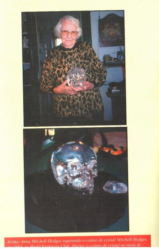 Sem dúvida, a mais famosa e enigmática peça de cristal antigo descoberta até agora, é o Crânio de Cristal de Mitchell Hedges. Um dia, em 1927 o explorador F. A. Mitchell Hedges estava limpando o entulho do topo de um templo em ruínas na cidade maia de Lubaantum, localizada nas Honduras britânicas, atualmente Belize, quando sua filha Ana, de 17 anos, que o havia acompanhado, viu algo brilhando na poeira abaixo. Ana encontrou um crânio finamente entalhado e polido, feito de cristal de rocha, em que faltava a parte da mandíbula. Três meses depois, ela localizou a mandíbula numa escavação a 25 pés do primeiro local.
